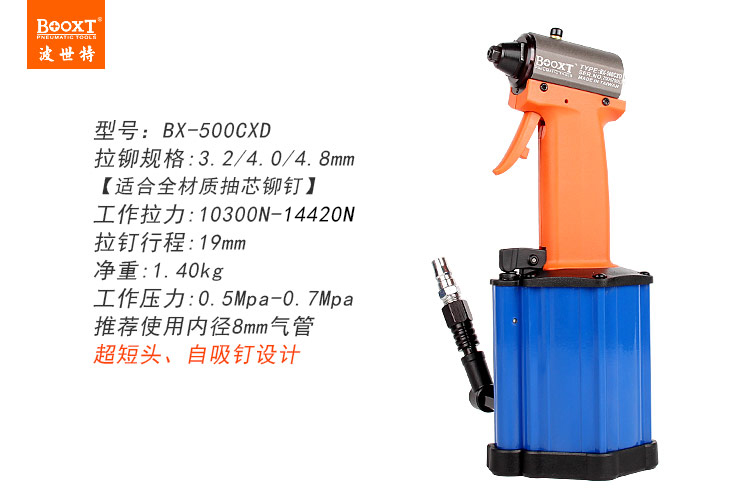 東莞市強(qiáng)勁五金工具有限公司提供臺(tái)灣BOOXT波世特品牌氣動(dòng)工具,超短氣動(dòng)拉鉚槍BX-500CXD廠(chǎng)家直銷(xiāo),首件享特價(jià)。咨詢(xún)熱線(xiàn):4008301980