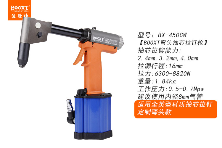 東莞市強(qiáng)勁五金工具有限公司提供臺(tái)灣BOOXT波世特品牌氣動(dòng)工具,彎頭氣動(dòng)拉鉚槍BX-450CW廠家直銷,首件享特價(jià)。咨詢熱線:4008301980