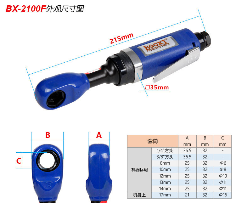 穿孔氣動(dòng)棘輪扳手特點(diǎn):(重力壓鑄外殼,強(qiáng)度更高不變形,提高耐用度)
