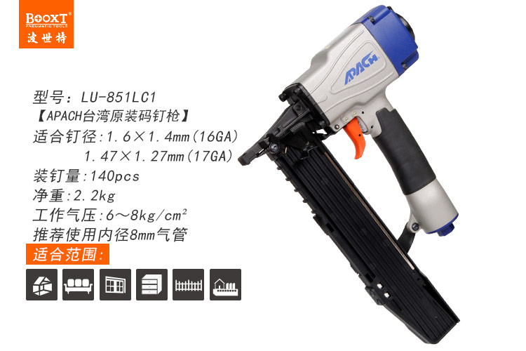 東莞市強勁五金工具有限公司提供臺灣BOOXT波世特品牌氣動工具,輕型氣動碼釘槍LU-851LC1廠家直銷,首件享特價。咨詢熱線:4008301980