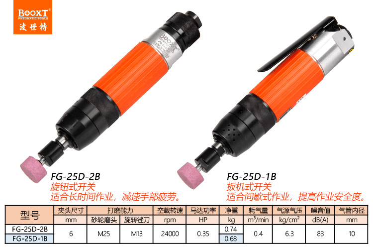 東莞市強(qiáng)勁五金工具有限公司提供臺灣BOOXT波世特品牌氣動工具,高精度氣動打磨機(jī)FG-25D-2B廠家直銷,首件享特價。咨詢熱線:4008301980