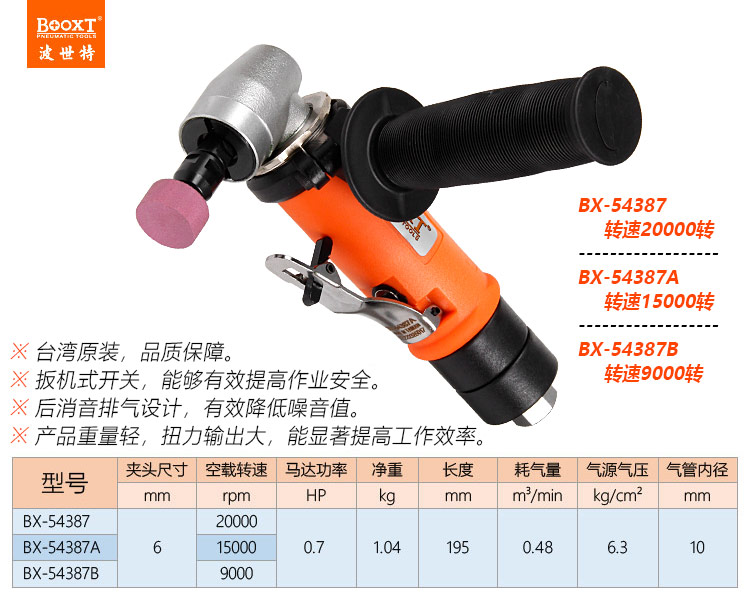 東莞市強(qiáng)勁五金工具有限公司提供臺(tái)灣BOOXT波世特品牌氣動(dòng)工具,彎頭風(fēng)磨機(jī)BX-54387A廠家直銷(xiāo),首件享特價(jià)。咨詢(xún)熱線:4008301980