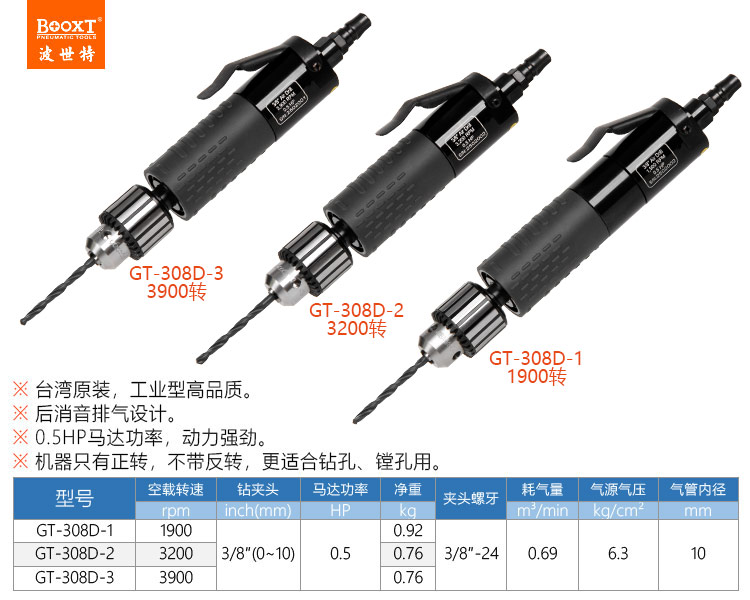 東莞市強勁五金工具有限公司提供臺灣BOOXT波世特品牌氣動工具,直柄氣鉆GT-308D-2廠家直銷,首件享特價。咨詢熱線:4008301980