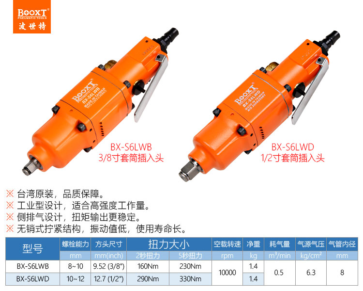 東莞市強(qiáng)勁五金工具有限公司提供臺灣BOOXT波世特品牌氣動工具,直柄氣動扳手BX-S6LWD廠家直銷,首件享特價(jià)。咨詢熱線:4008301980