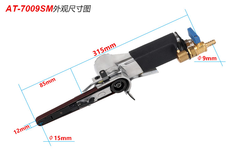 • 產(chǎn)品參數(shù): 砂帶尺寸:10×330mm; 空載轉(zhuǎn)速:18000rpm; 工具長(zhǎng)度:315mm; 工具重量:0.93kg; 耗 氣 量:0.56m3/min; 噪 音 值:88db(A) 使用工作氣壓:0.65Mpa; 推薦使用內(nèi)徑8mm氣管; 平時(shí)使用應(yīng)多加氣動(dòng)油保養(yǎng)。 【工業(yè)型/水磨】