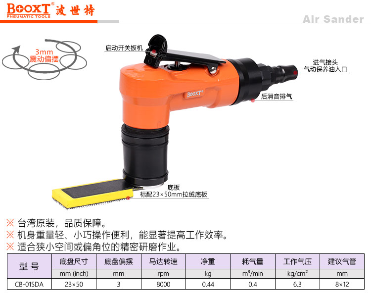 東莞強勁五金工具有限公司提供臺灣BOOXT波世特氣動工具,氣動振動打磨機CB-01SDA廠家直銷,首件享特價。咨詢熱線:4008301980