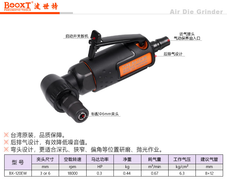 東莞市強(qiáng)勁五金工具有限公司提供臺灣BOOXT波世特品牌氣動工具,超短彎頭風(fēng)磨機(jī)BX-120EW廠家直銷,首件享特價。咨詢熱線:4008301980