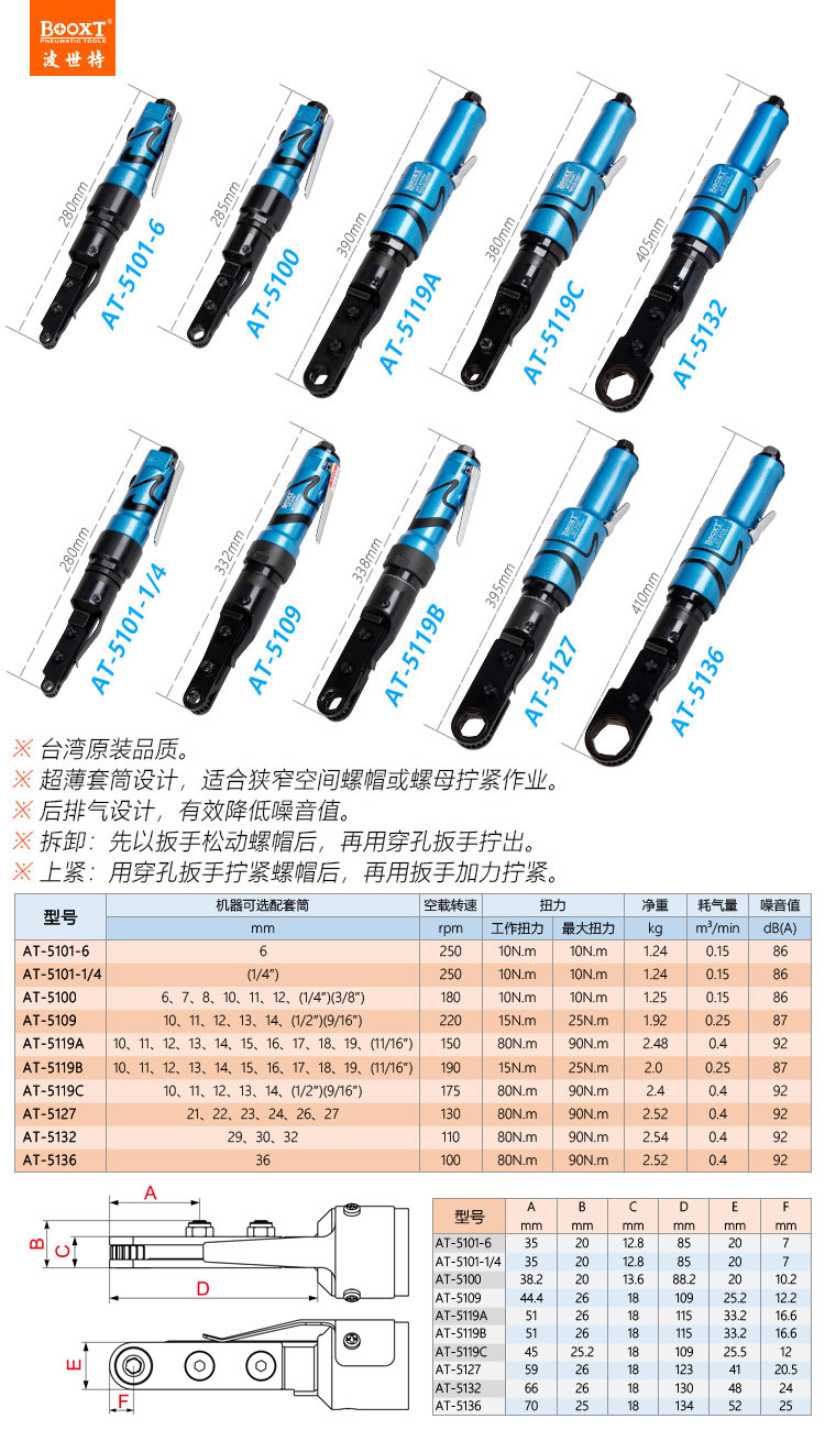 東莞市強(qiáng)勁五金工具有限公司提供臺(tái)灣BOOXT波世特品牌氣動(dòng)工具,穿孔式氣動(dòng)棘輪扳手AT-5100廠家直銷,首件享特價(jià)。咨詢熱線:4008301980